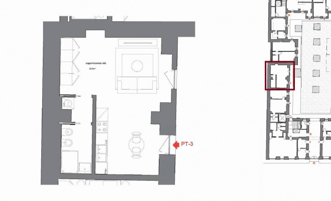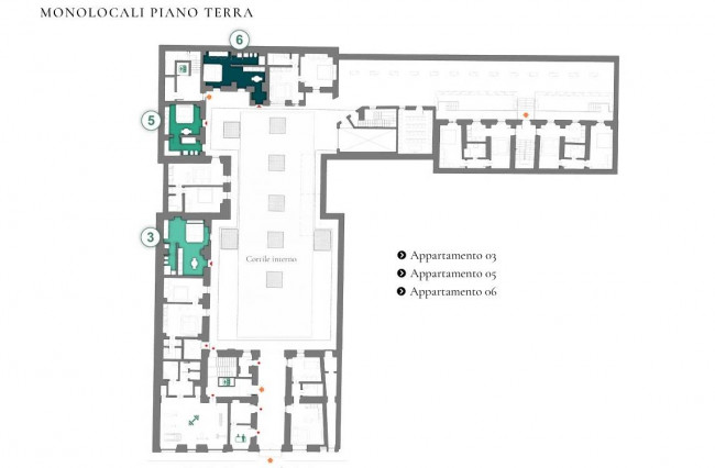 Appartamento monolocale ristrutturato a nuovo, esposto su corte interna, in condominio storico in fase di totale restauro con l'applicazione di soluzioni impiantistiche che garantiscano comfort abitativo e risparmio energetico.