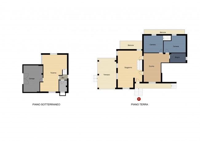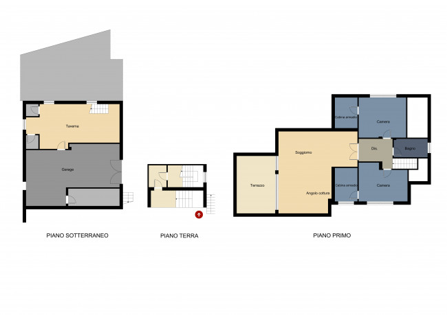 al piano seminterrato: due tavernette, ripostiglio, cantina e due box auto.