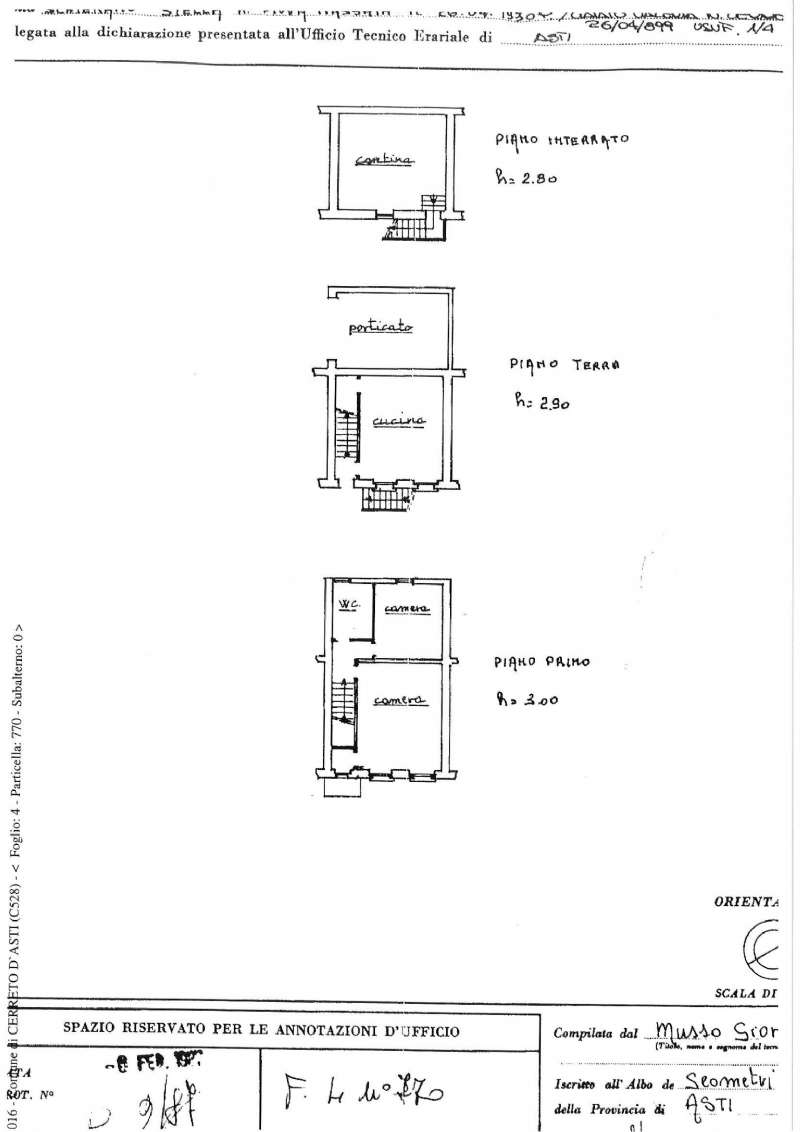 Proponiamo nell'Astigiano la Vendita di una porzione di cascina a Cerreto d'Asti. La disposizione si sviluppa su due livelli. Al piano terreno, che si affaccia sul giardino di proprietà, vi è un ingresso, salone e cucinino. Al primo piano collegato da scala interna vi sono 2 camere (una delle quali è mansardata), un bagno e un balcone.Completa la proprietà una cantina di pertinenza e un portico sul retro. piccolo orto e ca. 1000 mq. di terreno boschivo.