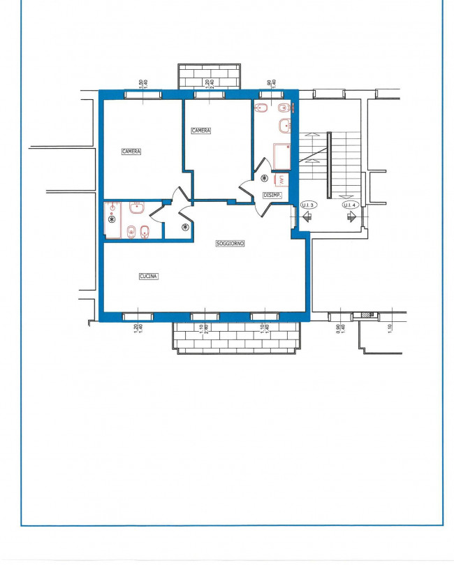 ingresso living su soggiorno con cucina abitabile a vista ( possibilità di separarla), disimpegno con 2 camere e 2 servizi di cui uno con ventilazione forzata. Sottotetto soprastante non collegato e non abitabile di open space di 37 mq sfruttabili a tutta altezza su 80, con ampio velux, ad € 30.000,00
