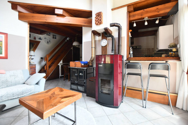 Nell'appartamento sono presenti una stufa a legna ed una termostufa a pellet con cui è possibile scaldarsi tutto l'inverno, ed anche una caldaia nuova a gas metano. Inoltre per l'acqua calda ci sono dei pannelli solari.