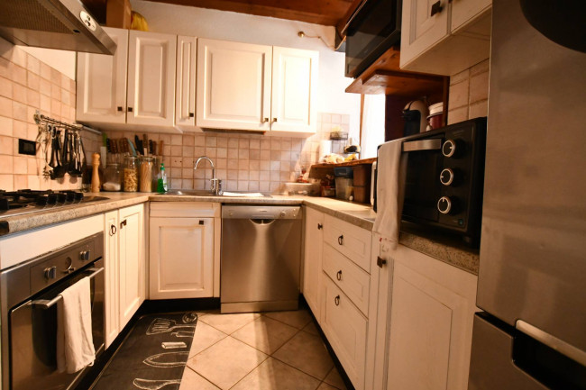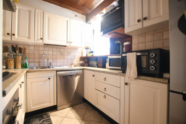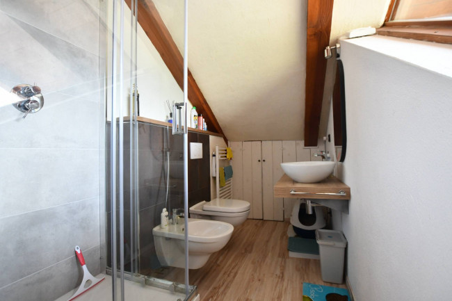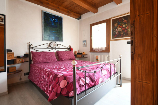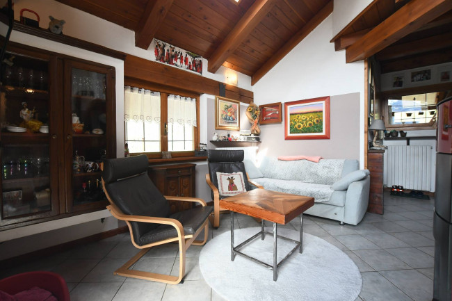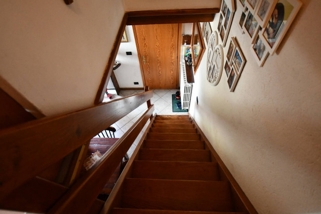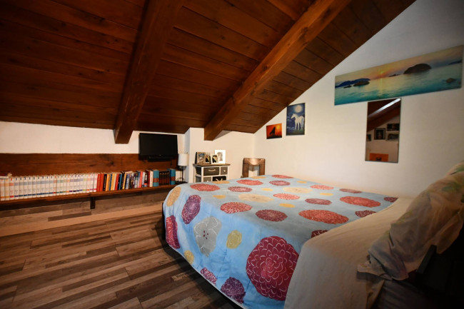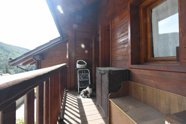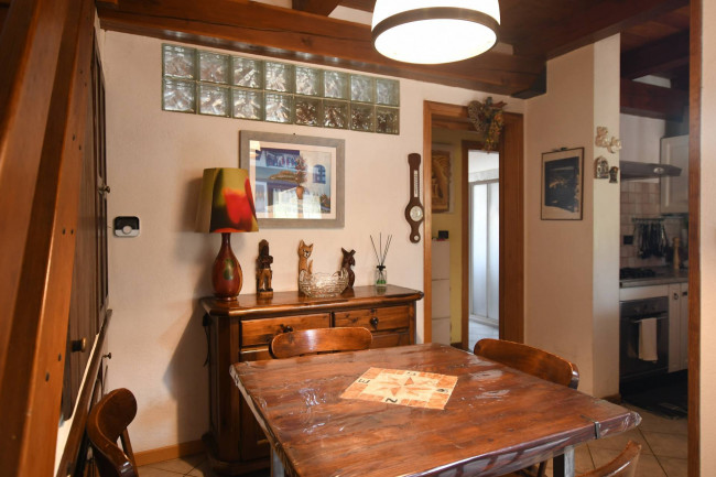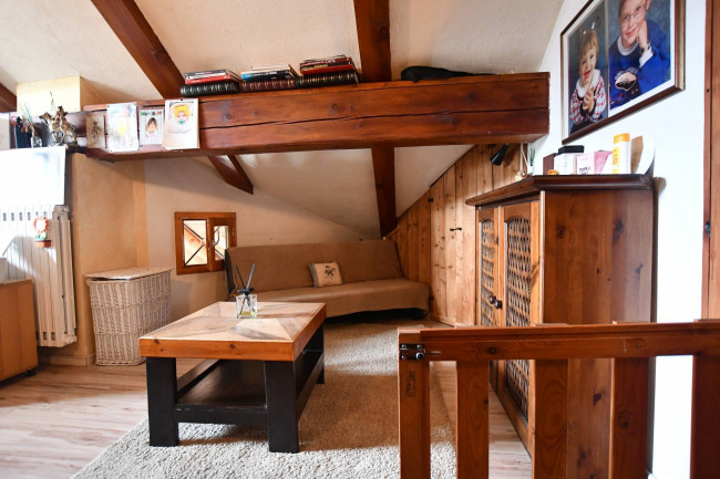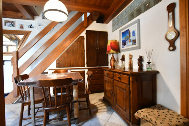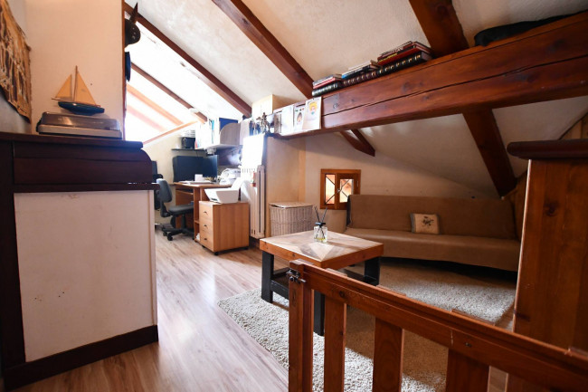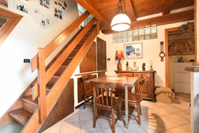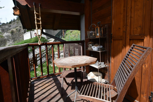 L'immobile è adatto sia per residenti, sia come seconda casa. Suddiviso su due piani, è così composto: al piano sotto troviamo un ingresso, ampio soggiorno con camino e terrazzino al sole, cucina semiabitabile, bagno con doccia e finestra, camera matrimoniale con balcone; al piano superiore, collegato da una scala in legno, troviamo una seconda camera da letto, una terza camera adibita a zona studio ed un bagno.